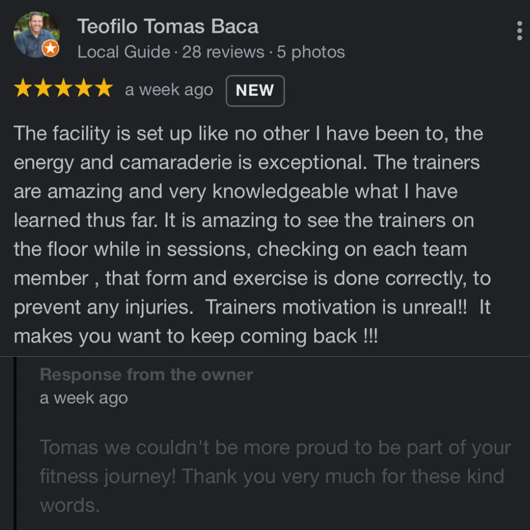 "I was really unsure if I wanted to join group classes... I'm usually more of a solo gym, straight strength training type of gal... I've gotta say it's awesome. I'm sweating, 40 minutes + of just fun with great people, great community and awesome trainers. So great! You should join!"